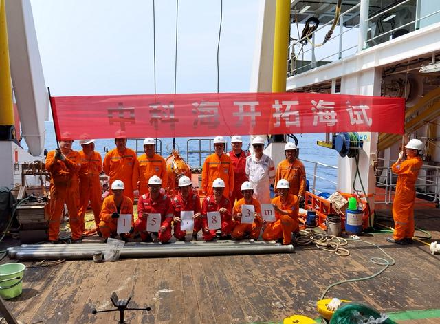 “中科海开拓”系列3500米级深水可视化可控沉积物柱状取样系统搭载“海洋地质九号”地球物理勘探船,在我国南海1778米水深成功完成海试验收,获取单柱、连续、低扰动沉积物柱状样品15.83米,取样率88%,超过该取样系统15米的设计最大取样长度,创造了该海域具有姿态和方位信息样品的最长纪录,大幅刷新了青岛海洋地质研究所地质取样长度纪录(9.5米)。