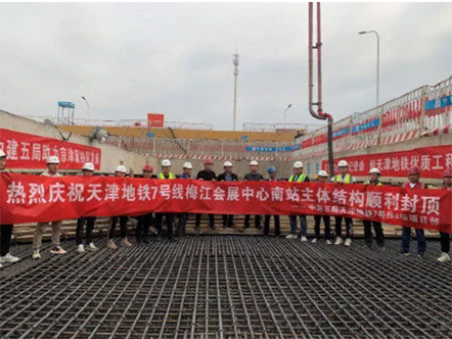 4月22日,由中建基础牵头中建五局承建的天津地铁7号线梅江会展中心南站主体结构顺利封顶。