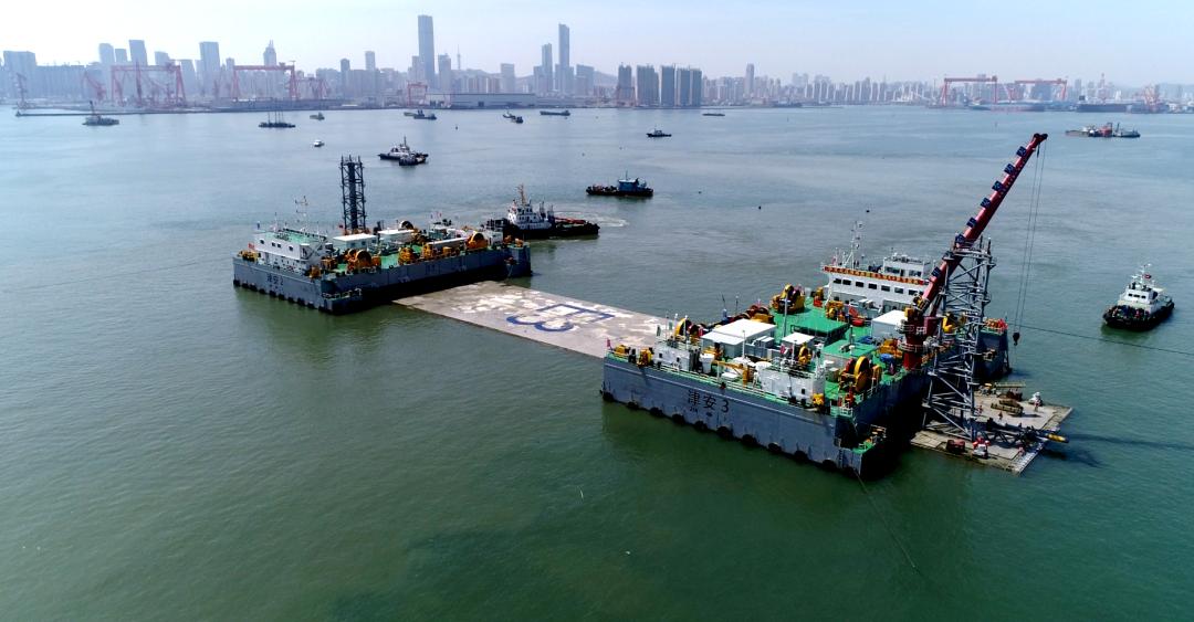 为确保整平施工如期完成,大连湾海底隧道项目团队优化了沉放工艺,有效规避风险。E3管节安装完成后,项目团队已紧锣密鼓开展后续管节安装准备,预计年内安装10个管节。