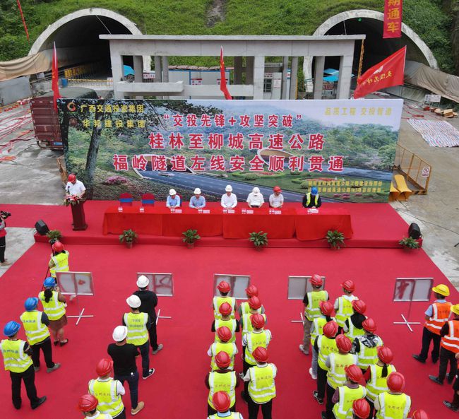 桂林至柳城高速公路福岭隧道左洞顺利贯通