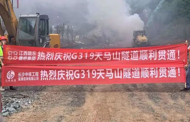 “爆破倒计时,5、4、3、2、1……”5月11日上午10时35分,在G319线浏阳天马山隧道改扩建工程隧道工程南洞口,随着一阵震耳欲聋的炮声响起,隧道出口处霎时间硝烟弥漫。该隧道的成功爆破,标志着G319浏阳天马山隧道改扩建工程项目隧道正式贯通,比原计划工期提前了4天。