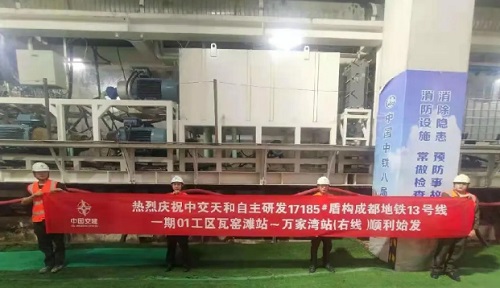 核心提示:近日,由中交天和自主研发制造的17185-W1工号盾构机在成都13号线一期工程土建1工区瓦窑滩站~万家湾站区间右线顺利始发,标志着该工区正式进入双线同步掘进阶段。