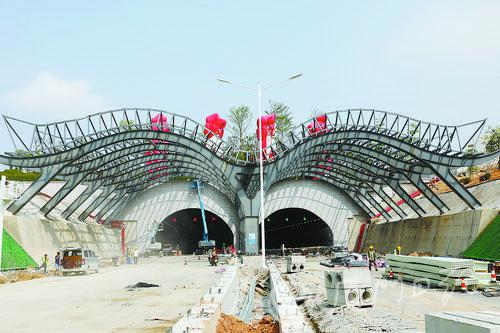 5月9日,第二西通道(海沧隧道)海沧端隧道口。