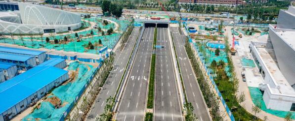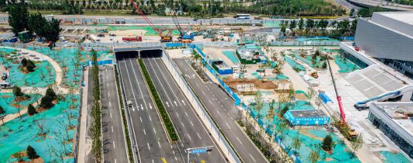 5月12日,在济南国际医学科学中心核心区的山东第一医科大学,南北穿行整个校区的地下隧道全部建设,南端出入口沥青路面铺设和交通标志线施划已经完成,从高空俯瞰,双向共有10条快车道,其中有6条与地下隧道连通,剩余4条与青岛路西端相通。
