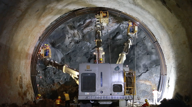 据介绍,软弱围岩大断面隧道大型机械配套施工一直以来是我国长大铁路复杂地质隧道施工的技术难题。香树湾隧道主要以软弱围岩为主,施工中,郑万高铁项目以大型机械配套施工为主,采用信息化、智能化管理,引进了全电脑三臂凿岩台车、半自动拱架安装台车、混凝土湿喷机组、高压注浆机等数字化、智能化及信息化先进的配套设备,配套开展施工工艺,保证了安全和质量,又加快了施工进度,实现了连续14个月软弱围岩月掘进突破100米大关,创下月掘进145米新纪录。