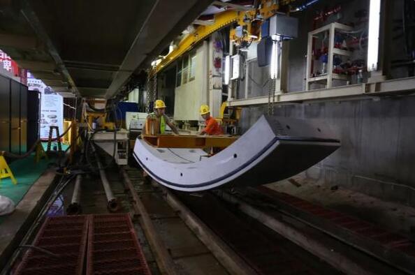 据介绍,此次盾构机始发后将走右线依次穿越湖中路、花田美事公园等地,全长约789米,计划于今年8月底打通至角江路站。