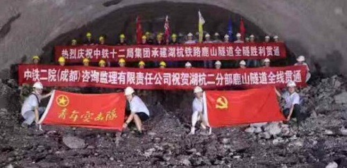 本次顺利贯通的鹿山隧道位于杭州市富阳区,全长5605.03米,投资3.61亿元,共设有8个工作面同时施工。隧道地处浙东丘陵地带,最高海拔约385米,最大埋深约280米,地质构造复杂,风险源多,是全线唯一一座I级高风险、长大隧道。针对复杂的隧道地质条件,湖杭铁路有限公司、杭黄铁路(沪昆客专浙江)公司、中铁十二局加强技术攻关,引进新工法、新工艺、新材料、新装备,克服了大部分隧道离地面较近、深挖则容易冒水、距离原有公路铁路隧道较近等施工难题,实现了复杂地质条件下的安全优质高效施工。