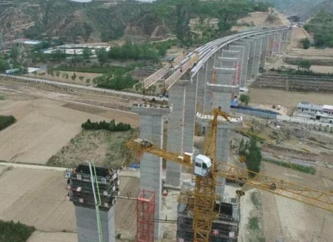 峪口大桥位于G209吕梁改线工程右线K21+442(左线K21+467)处,全长808米(848)米,横跨松峪线,墩柱最高处达到了55.70米,目前已经完成10跨梁板的架设任务,一座现代化的大桥已经初具规模。
