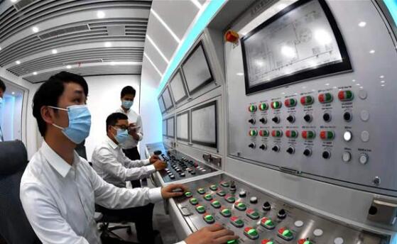 工作人员演示远程操控盾构施工