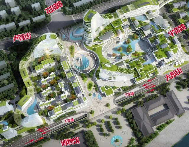 大猷街东西向的车流地下走,人流则由路边步行街通过。