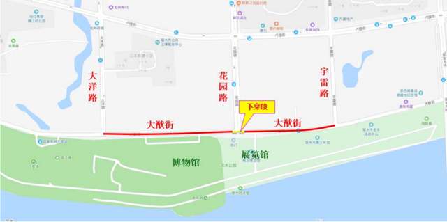 据悉,这条下穿车行道位于大猷街滨水公园段,以后机动车从地下通行,市民可以从中央广场直接走到滨水公园,也是丽水市中心首条下穿车行道。