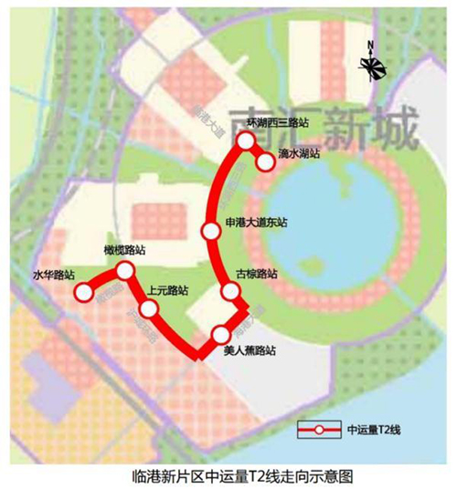 中运量T2线(滴水湖站-水华路站段)规划设置8座车站,分别为滴水湖站、环湖西三路站、申港大道东站、古棕路站、美人蕉路站、上元路站、橄榄路站、水华路站(以上站名均为暂命名) 。站点设置方案将结合公示及相关部门意见,在专项规划中予以明确。实际运营停靠站点可根据客流需求灵活设置。