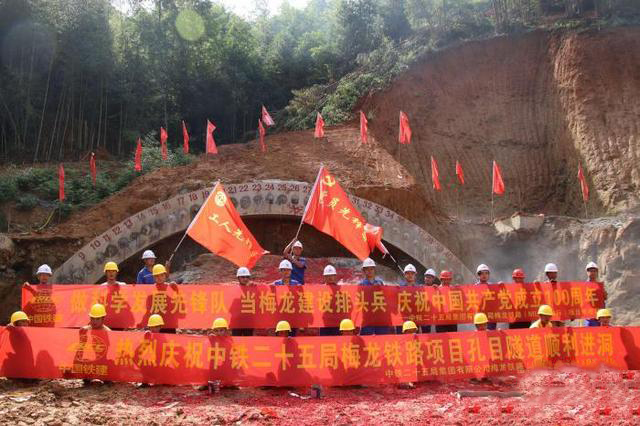中铁二十五局梅龙铁路4标二分部总工程师王曦介绍说:“截至目前,梅龙铁路4标已有14座隧道进洞开挖、3座已实现贯通。标段剩余的3座隧道预计在今年9月份前全部进洞,计划于明年10月份全部实现贯通。”