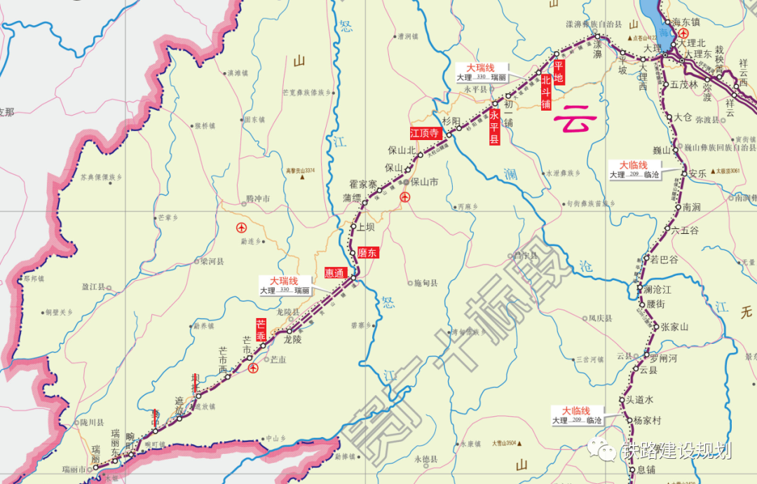 大瑞铁路全长330公里,桥隧比76.5%,是我国《中长期铁路网规划》中完善路网布局和西部开发重要项目,全线采取大理至保山、保山至瑞丽分段建设模式,其中,先期开工建设的大理至保山段目前路基、桥梁已基本完成,21座隧道还剩余2座,有望今年底开通运营,届时大理至保山仅需1小时左右,云南保山将结束不通火车的历史。