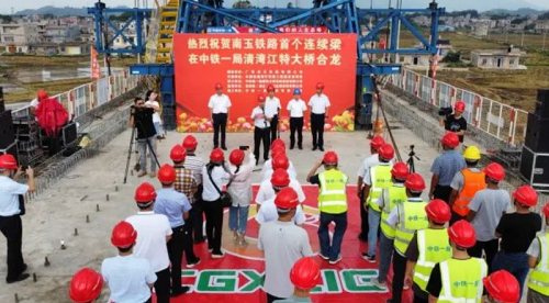 南玉高铁全线首座连续梁清湾江特大桥成功合龙