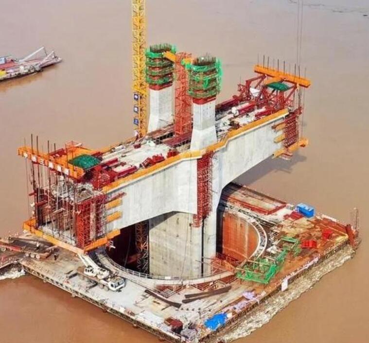 14日,常益长铁路沅江特大桥正在进行梁体、主塔施工,主塔已建设完成25米,即将进行斜拉索施工。