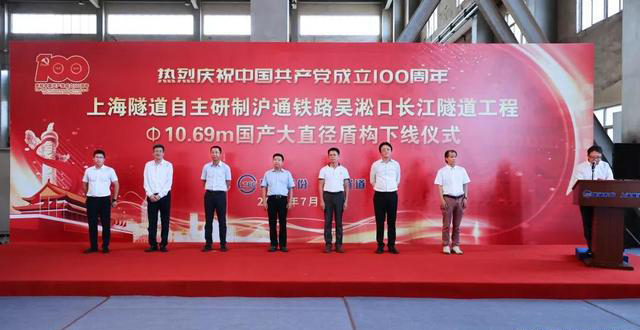 7月15日,沪通铁路二期先导工程吴淞口长江隧道工程的两台Φ10.69m大直径盾构在上海隧道机械制造分公司临港基地完成下线。