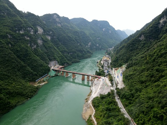 作为渝湘复线高速彭水至酉阳段施工难度最大的桥梁,磨寨乌江特大桥全桥长708米,一跨过乌江,主塔最高达286米。