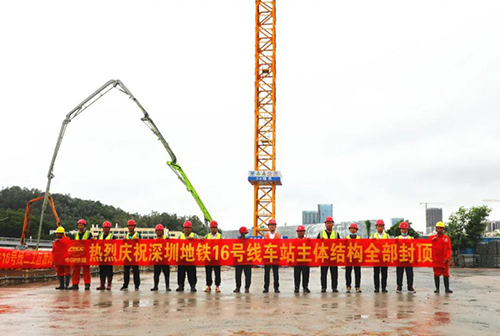 7月19日上午,随着最后一块顶板混凝土浇筑完成,数码城站主体结构实现封顶。至此,深圳地铁16号线23座车站主体结构全部封顶。
