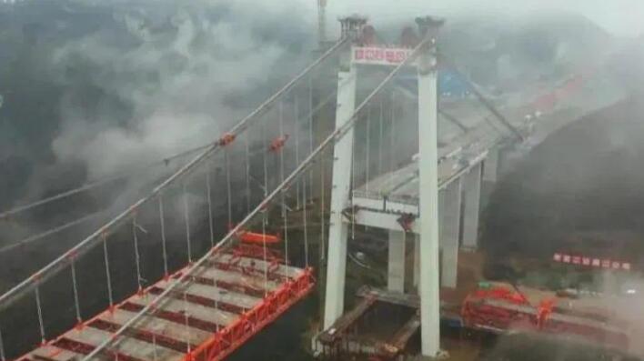 阳宝山特大桥全长1112米,主跨650米,主缆施工采用的AS法工艺是国内悬索桥施工首次应用,填补了国内技术空白,它还是国内山区最宽的钢桁梁悬索桥。这座大桥于2017年9月启动建设,由中交二公局二公司承建。