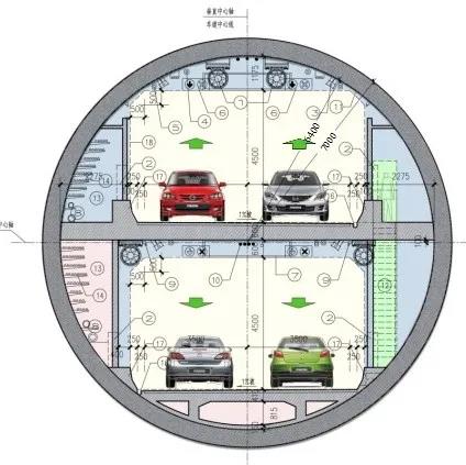 龙水南路越江隧道设计为城市次干路,隧道主线设计速度为40km/h,双向四车道。浦西段龙水南路周边多为成熟小区,且现状龙水南路道路下管线众多,建设条件苛刻,为了尽量减少对周边环境的影响,浦西段南北主线采用平面共线布置、上下叠层设计。