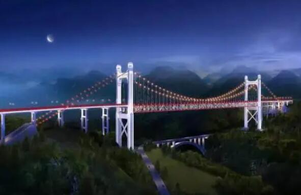 金州大桥是以义龙集团为业主单位,由兴义市与义龙新区联合共建的G324国道马岭河大桥提等改造项目,大桥起点位于兴义侧峡谷大道与万峰大道交叉口,终点位于义龙新区顶效侧桥台后117m处,与义龙新区东峰林大道对接,路线全长2912m,主桥采用单跨450m的钢桁加劲梁地锚式悬索桥,桥宽36.3m。上层桥面采用双向六车道布置,下层桥面中间预留远景其他功能交通通道,主线桥梁全长1600m。建设主要内容为路基工程、路面工程、桥梁工程等主体工程,以及绿化、安防等附属工程,估算总投资15.3亿元。