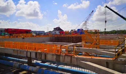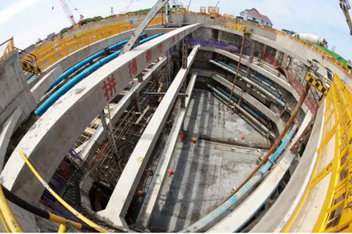 隧道盾构施工的始发井宽度42米,长度101米,深度达19米。两台直径10.69米国产大盾构已在临港基地成功下线,将从这里往浦西方向掘进。