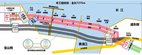盾构将穿越上海外环线、沿江通道浦东段、滨江森林公园、黄浦江大堤、吴淞导堤等众多大型公共设施。
