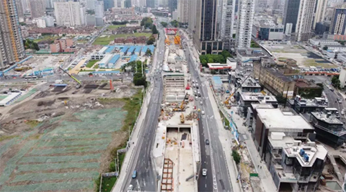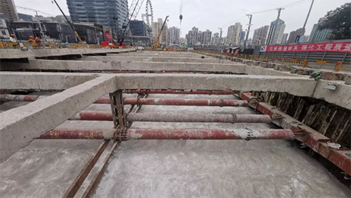 此次浇筑顶板单次浇筑方量达589方。本标段自2020年4月18日首幅地墙成槽以来,历时17个月,共浇筑30202方主体结构混凝土,最终完成A、B、C、D、E五个施工区段的双层双向地下暗埋通道工程施工。