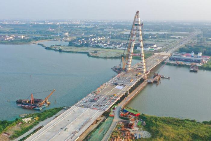 9月20日,随着最后一节钢节段顺利吊装、焊接,无锡宛山湖大桥钢塔顺利合龙,为年底前全桥通车打下坚实基础。