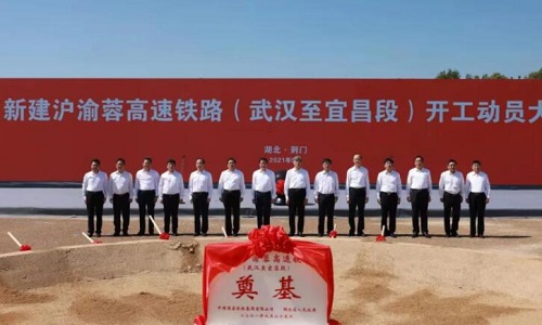 9月25日上午,沪渝蓉沿江高铁武汉至宜昌段开工动员大会在湖北省荆门市举行,这标志着沿江高铁武汉至宜昌段正式开工建设。这也是东起上海、西至成都的沪渝蓉沿江高铁七段中开工的首个工程。