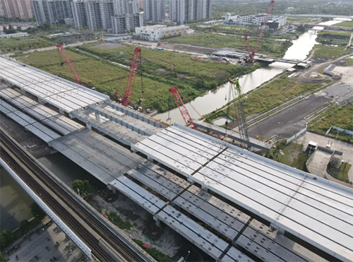 上海建工集团说,近日,随着最后一榀小箱梁精准就位,S3公路新建工程1标周邓公路-周祝公路段高架结构顺利贯通。S3公路(周邓公路-G1503公路两港大道立交)新建工程全长约26.6公里,其中,1标主线全长5.15公里,此次结构贯通的路段全长1.478公里。详见↓