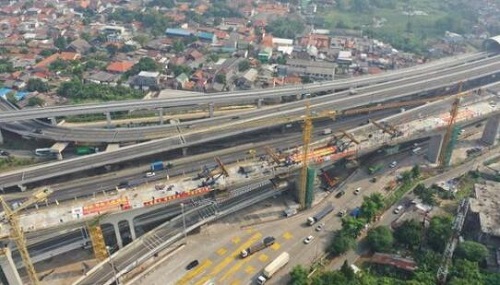这是9月29日拍摄的印度尼西亚雅万高铁2号特大桥最后一联连续梁合龙施工现场。该地段紧邻雅加达到万隆高速公路,地形环境复杂。施工人员密集设置了24联连续梁,其中一联连续梁跨越3层高速公路匝道。