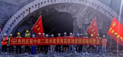 经中铁二局集团有限公司贵南高铁项目部140名建设者历时一年的奋战,10月5日13时,贵南高铁加登隧道胜利贯通,为贵南高铁按计划建成通车奠定了坚实的基础。