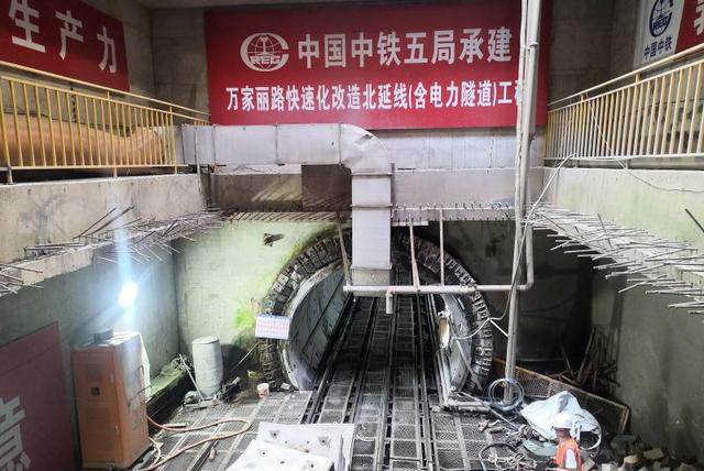 近日,随着“轰隆”一声巨响,一台直径4.1米的“迷你”盾构机破桩而出,一道亮光从桩间透进隧道内,现场作业人员顿时欢呼起来。这标志着万家丽路快速化改造北延线项目电力隧道第三区间第3号盾构机顺利完成接收,目前电力隧道施工重点正逐渐转移到区间清扫、支架安装、排水沟、消防工程、临电工程等。