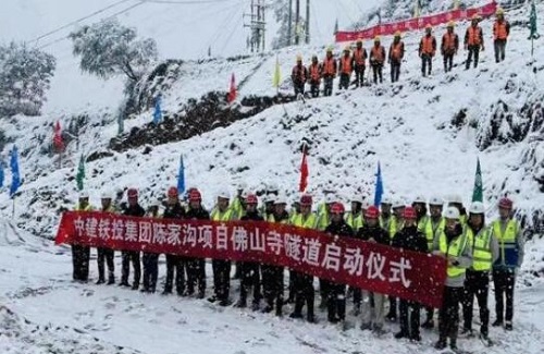 近日,甘肃各地温度骤降,正在新建的天水至陇南铁路(天平铁路南延线)陈家沟煤矿专用线项目所在地华亭市也迎来了2021年的第一场大雪。10月10日,鹅毛大雪铺天盖地,但刺骨的严寒挡不住铁路建设者们的工作热情,项目地机械轰鸣响彻云霄,陈家沟煤矿专用线项目佛山寺隧道正式开工建设。