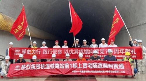 10月16日上午,由中铁十一局五公司承建的杭温铁路上贾宅隧道大里程段顺利贯通,这是杭温铁路1标首条贯通的隧道,标志着本标段工程建设取得重大进展。