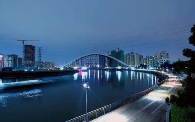 新典桥主桥在岸上拼装完成,以整体顶推的方式抵达对岸——这在宁波桥梁建造史上,尚属首次。该桥梁单跨跨径213米,是全国跨径最大的钢拱梁整体顶推跨江桥梁。