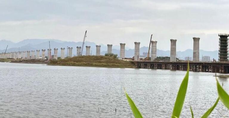 其中275-281号墩,284-289号墩位于姑塘水库水中。姑塘水库是钱塘江流域东阳江支流梅溪中游的一座大型水库,位于义乌市义亭镇王山顶村东侧,控制集水面积3.66km²,蓄水深度约6m,具有水位深、岩层坚硬桩基钻进难度大,环保要求高等特点。