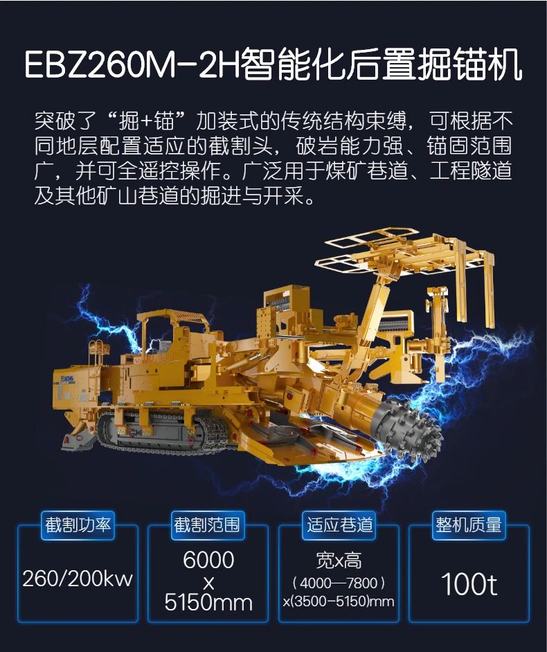 掘锚一体机EJM280/4-2、智能化后置掘锚机EBZ260M-2H、单轨吊DC216/96Y,从掘、锚、护到运,徐工包了!