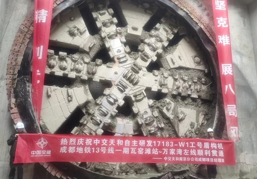 近日,由中交天和自主研发制造的17183-W1工号盾构机在成都市轨道交通13号线一期工程土建1工区瓦窑滩站~万家湾站区间左线顺利贯通。