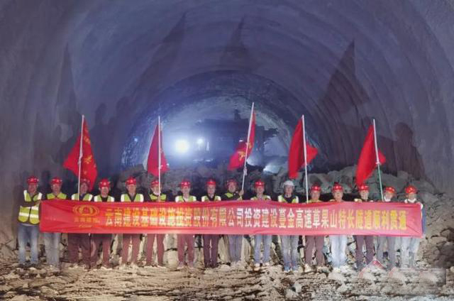 蔓金高速由云南建投集团投资建设,主线全长50.58公里,概算总投资78.17亿元。全线共设桥梁127座,隧道16座,桥隧比79.8%。草果山隧道是全线重点控制性工程,连接红河州金平县阿得博乡和金河镇,全长7005米,最大埋深903.8米,属深埋特长隧道。据悉,蔓金高速全线共有超过3000米的特长隧道2座,除草果山隧道外,全长3552米的营盘山6号特长隧道,左右幅已分别于2021年3月29日、7月18日顺利贯通。