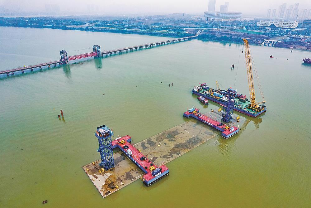 鱼梁洲隧道共含10节沉管,其中东汊水域6节、西汊水域4节,先在陆地干坞完成制作,然后由拖轮运至指定水域沉放。据介绍,为确保沉管对接万无一失,在市住建局、市政府投资工程建设管理中心大力支持下,项目技术团队精心组织,不断优化施工组织方案,制定了详细的施工流程和安全质量保证措施。同时,对沉管管节对接过程中各个环节反复模拟、演练,为顺利沉放打下了坚实基础。