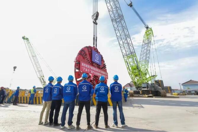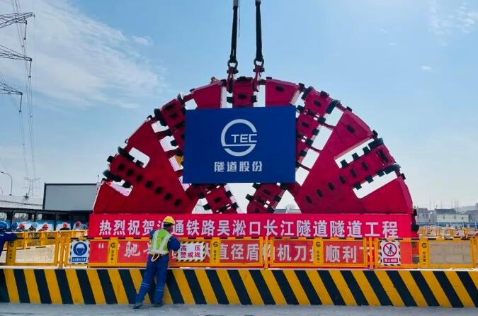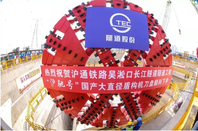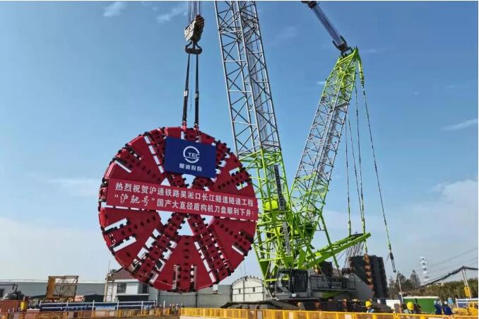 11月2日,沪通铁路吴淞口长江隧道工程直径10.69米国产大直径盾构“沪驰号”盾构刀盘顺利吊装下井!