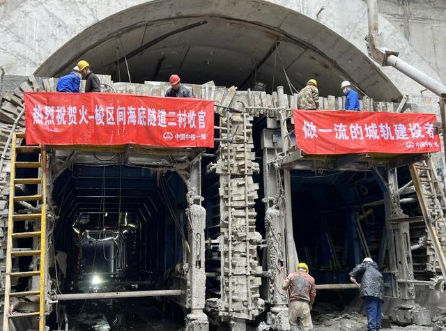 火-梭区间海底隧道采用直径12.26米“海宏号”气垫式泥水平衡盾构机施工。自2019年1月18日盾构始发以来,攻克“长、大、高、险”四大难题,穿越1538米溶洞群、完成2882米长距离硬岩掘进,使海底隧道于2021年1月10日提前顺利贯通。