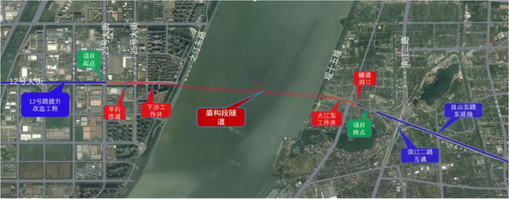 杭州艮山东路过江隧道位于钱塘区,西起12号大街与23号大街交叉口以东,东至滨江二路西侧,是钱塘快速路的重要组成部分。