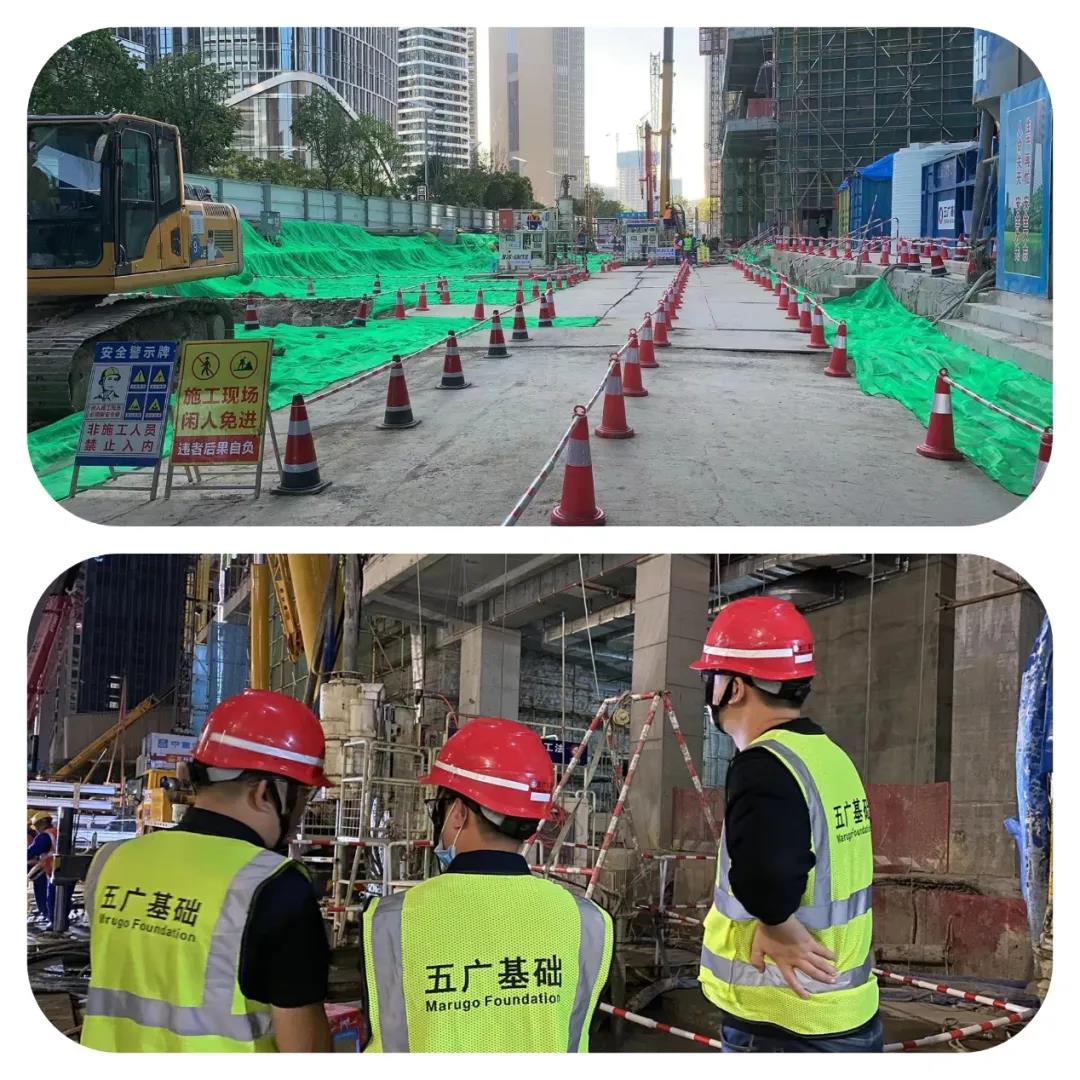 在项目施工过程中成功承办了城市轨道交通地铁微扰动控制技术交流会议暨MJS工法观摩会,通过技术交流观摩,MJS工法得以向更多的行业单位展示宣传,实现了为技术发展和工法推广夯实基础的目标。城市建设是一场“无声的战斗”,我司五广基础在这场斗争中重质量、重施工、重管理、重创新,坚持高质量发展,以点带面强化创新基础建设工艺工法,立足当前、着眼长远、突破困难、突出重点,秉承用心做事的初心,把项目打造成精心之作,经典之作、荣誉之作!