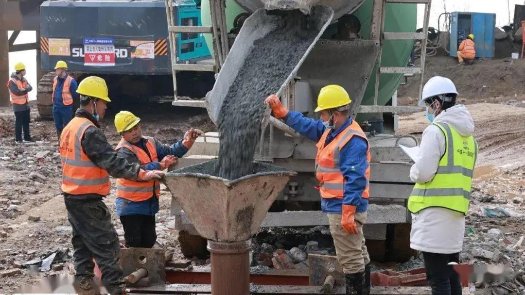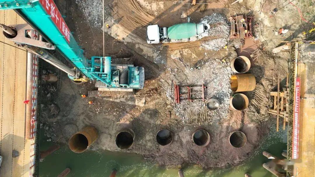 记者在施工现场看到,混凝土搅拌车在工人们的精准操控下,对主桥主墩首桩进行浇筑,整个浇筑过程持续了6个多小时。