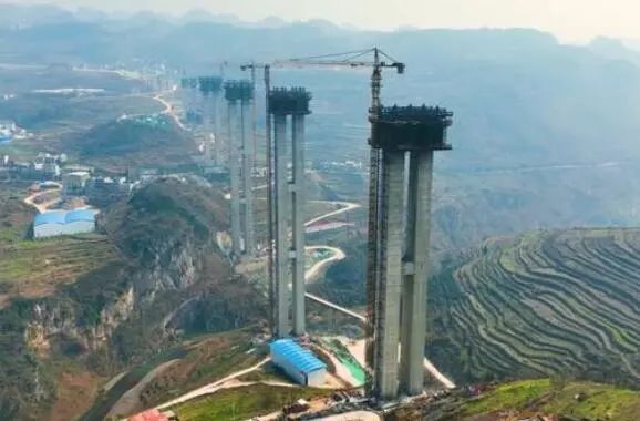 位于镇雄境内的筒车河特大桥作为镇七高速公路全线控制性工程全长1458米,桥面平均高度约70米,最大桥高约222米。