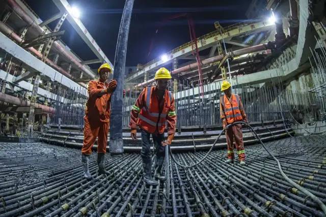 此次浇筑的首块底板厚1.5米,宽54.5米,长21米,一次性浇筑方量1718方,总浇筑面积1144.5平方米。